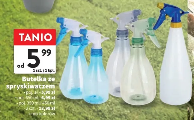 Zastanawiasz si臋, gdzie kupi膰 i ile kosztuje produkt Spryskiwacz 350 ml + 450 ml? Regularnie sprawdzamy, czy jest promocja na ten produkt w Biedronka, Lidl, Kaufland, Auchan, Netto, Makro i innych sklepach. Aktualnie nie posiadamy ofert promocyjnych na ten produkt.