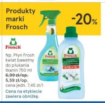 Zastanawiasz si臋, gdzie kupi膰 i ile kosztuje produkt 艢rodek do czyszczenia kuchni sodowy Frosch? Regularnie sprawdzamy, czy jest promocja na ten produkt w Biedronka, Lidl, Kaufland, Auchan, Netto, Makro i innych sklepach. Aktualnie posiadamy 1 ofert臋 promocyjn膮 na ten produkt. Ceny zaczynaj膮 si臋 od 8,99z艂!