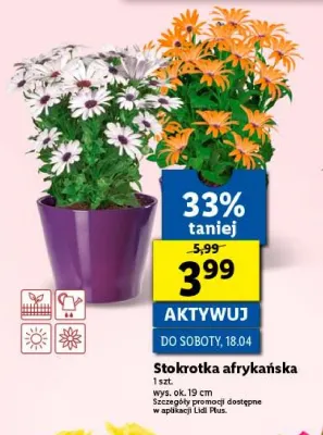 Cena produktu r贸偶ni si臋 w zale偶no艣ci od wybranego sklepu. Niestety nie posiadamy danych o aktualnych promocjach, jednak w艣r贸d archiwalnych ofert Stokrotka afryka艅ska wys. 19 cm kosztuje od 5,99 z艂.