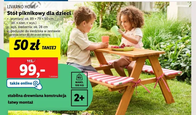 Ile kosztuje St贸艂 piknikowy dla dzieci 89 x 79 x 50 cm LIVARNO HOME?