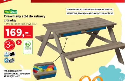 Przeglądaj podobne oferty promocyjne do Stół z ławką do zabawy 89 x 89 x 51 cm Florabest!