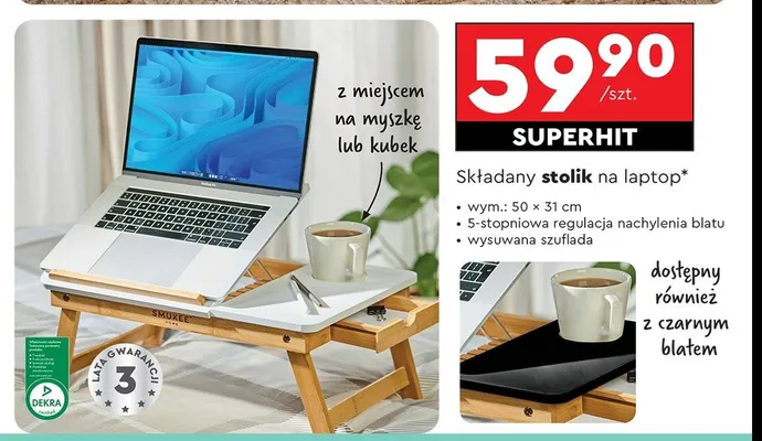 Gdzie mo偶na tanio kupi膰 produkt Stolik na laptop ze sk艂adanymi n贸偶kami 50 x 31 cm Smukee?