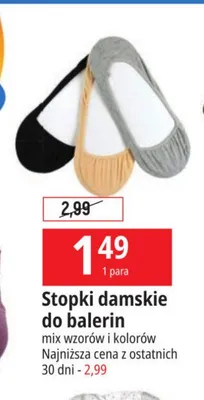 Cena produktu r贸偶ni si臋 w zale偶no艣ci od wybranego sklepu. Niestety nie posiadamy danych o aktualnych promocjach, jednak w艣r贸d archiwalnych ofert Stopki balerinki damskie kosztuje od 1,99 z艂 do 3,99 z艂.