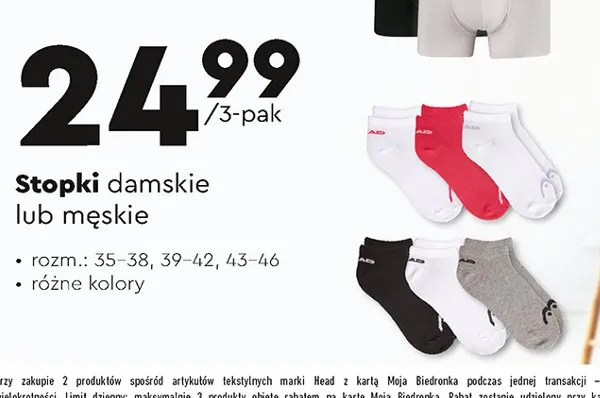 Zastanawiasz si臋, gdzie kupi膰 i ile kosztuje produkt Stopki m臋skie 33-38 Head? Regularnie sprawdzamy, czy jest promocja na ten produkt w Biedronka, Lidl, Kaufland, Auchan, Netto, Makro i innych sklepach. Aktualnie nie posiadamy ofert promocyjnych na ten produkt.