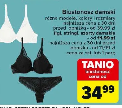 Zastanawiasz si臋, gdzie kupi膰 i ile kosztuje produkt Stringi damskie? Regularnie sprawdzamy, czy jest promocja na ten produkt w Biedronka, Lidl, Kaufland, Auchan, Netto, Makro i innych sklepach. Aktualnie posiadamy 1 ofert臋 promocyjn膮 na ten produkt. Ceny zaczynaj膮 si臋 od 9,00z艂!