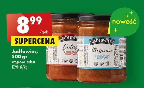 Cena produktu r贸偶ni si臋 w zale偶no艣ci od wybranego sklepu. Niestety nie posiadamy danych o aktualnych promocjach, jednak w艣r贸d archiwalnych ofert Strogonow z wieprzowin膮 i warzywami Jad艂owiec kosztuje od 8,99 z艂.
