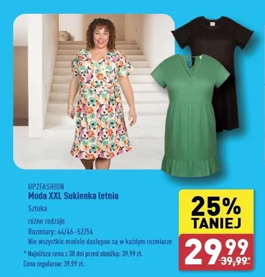 Zastanawiasz si臋, gdzie kupi膰 i ile kosztuje produkt Sukienka damska 44/46-52/54 Up2fashion? Regularnie sprawdzamy, czy jest promocja na ten produkt w Biedronka, Lidl, Kaufland, Auchan, Netto, Makro i innych sklepach. Aktualnie nie posiadamy ofert promocyjnych na ten produkt.