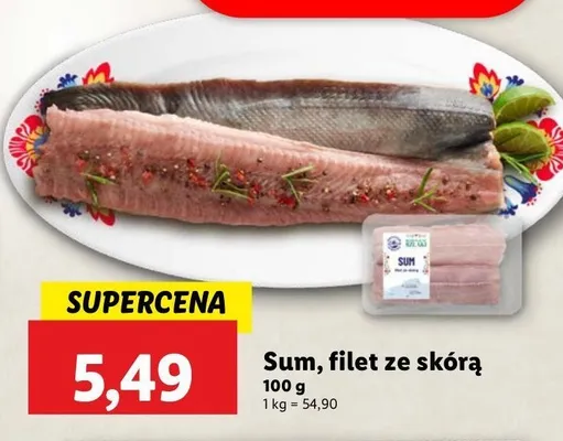 Cena produktu r贸偶ni si臋 w zale偶no艣ci od wybranego sklepu. Produkt Sum afryka艅ski filet ze sk贸r膮 mo偶esz kupi膰 w promocji ju偶 od 6,49 z艂 do 27,99 z艂. Najta艅sza oferta, jak膮 mamy w naszej bazie jest z sieci Auchan. Sum afryka艅ski filet ze sk贸r膮 kosztuje aktualnie 6,49 z艂. Zobacz ofert臋