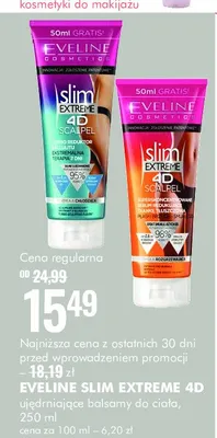 Cena produktu różni się w zależności od wybranego sklepu. Niestety nie posiadamy danych o aktualnych promocjach, jednak wśród archiwalnych ofert Superskoncentrowane serum redukujące tkankę tłuszczową Eveline slim extreme 4d scalpel kosztuje od 13,99 zł do 44,99 zł.