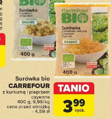 Ile kosztuje Sur贸wka z marchwi膮 kurkum膮 i pieprzem cayenne Carrefour bio?
