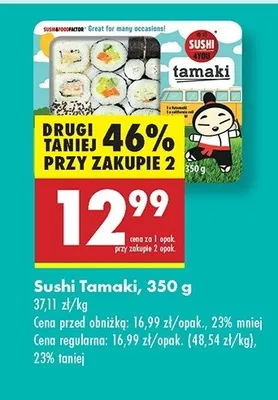 Cena produktu r贸偶ni si臋 w zale偶no艣ci od wybranego sklepu. Niestety nie posiadamy danych o aktualnych promocjach, jednak w艣r贸d archiwalnych ofert Sushi tamaki Sushi 4you kosztuje od 12,99 z艂 do 16,99 z艂.