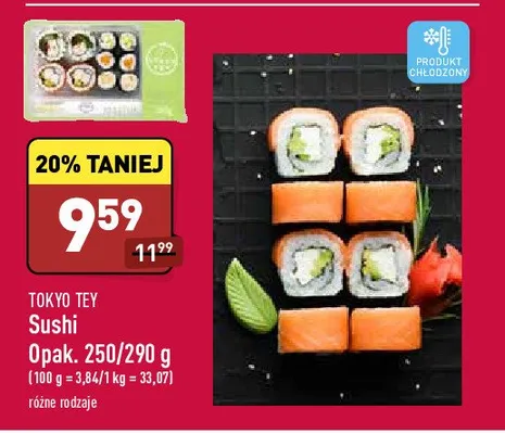 Cena produktu r贸偶ni si臋 w zale偶no艣ci od wybranego sklepu. Niestety nie posiadamy danych o aktualnych promocjach, jednak w艣r贸d archiwalnych ofert Sushi tey Tokyo sushi kosztuje od 8,49 z艂 do 9,59 z艂.