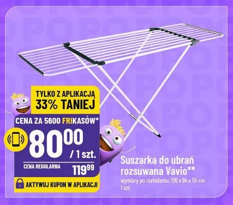 Zastanawiasz si臋, gdzie kupi膰 i ile kosztuje produkt Suszarka do ubra艅 18 m Vavio? Regularnie sprawdzamy, czy jest promocja na ten produkt w Biedronka, Lidl, Kaufland, Auchan, Netto, Makro i innych sklepach. Aktualnie nie posiadamy ofert promocyjnych na ten produkt.