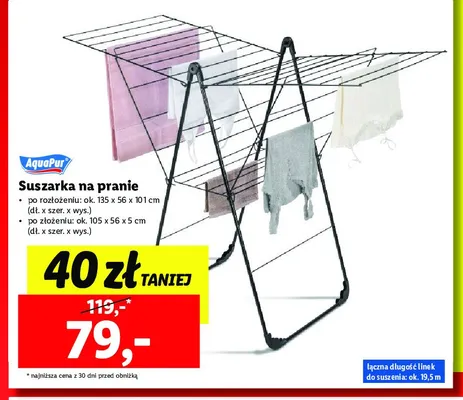 Zastanawiasz si臋, gdzie kupi膰 i ile kosztuje produkt Suszarka na pranie Aquapur? Regularnie sprawdzamy, czy jest promocja na ten produkt w Biedronka, Lidl, Kaufland, Auchan, Netto, Makro i innych sklepach. Aktualnie nie posiadamy ofert promocyjnych na ten produkt.