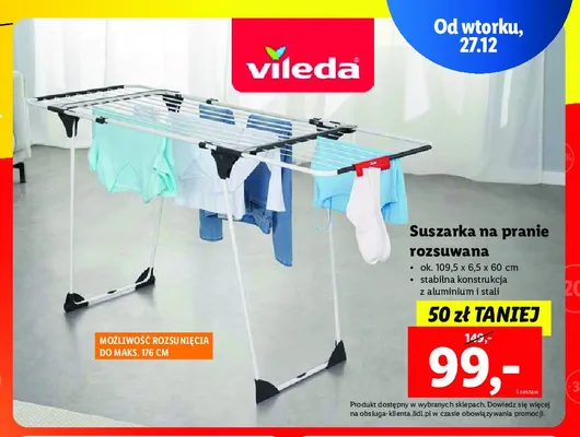 Cena produktu r贸偶ni si臋 w zale偶no艣ci od wybranego sklepu. Niestety nie posiadamy danych o aktualnych promocjach, jednak w艣r贸d archiwalnych ofert Suszarka rozsuwana 109.5 x 6.5 x 60 cm Vileda kosztuje od 99 z艂.