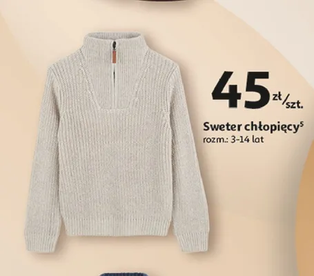 Zastanawiasz si臋, gdzie kupi膰 i ile kosztuje produkt Sweter ch艂opi臋cy? Regularnie sprawdzamy, czy jest promocja na ten produkt w Biedronka, Lidl, Kaufland, Auchan, Netto, Makro i innych sklepach. Aktualnie nie posiadamy ofert promocyjnych na ten produkt.