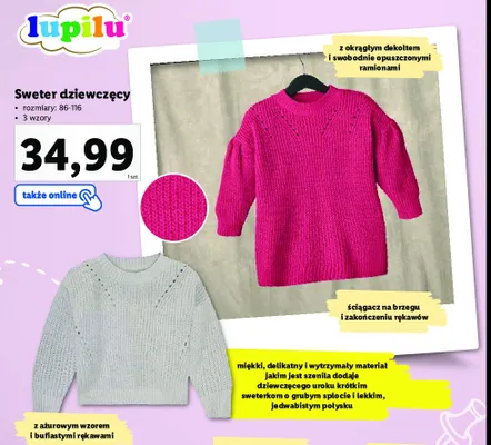 Przegl膮daj podobne oferty promocyjne do Sweter dziewcz臋cy rozm. 86-116 Lupilu!
