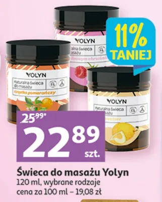 Cena produktu różni się w zależności od wybranego sklepu. Niestety nie posiadamy danych o aktualnych promocjach, jednak wśród archiwalnych ofert Świeca do masażu w malinowym chruśniaku Yolyn kosztuje od 22,89 zł do 25,99 zł.