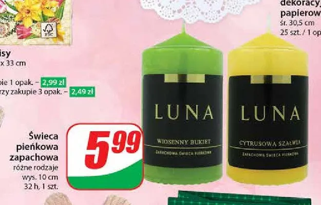 艢wieca pie艅kowa wiosenny bukiet LUNA aktualnie nie wyst臋puje w bazie naszych gazetek promocyjnych. Nie martw si臋! Gdy tylko pojawi si臋 ciekawa promocja na 艢wieca pie艅kowa wiosenny bukiet LUNA, umie艣cimy j膮 na naszej stronie