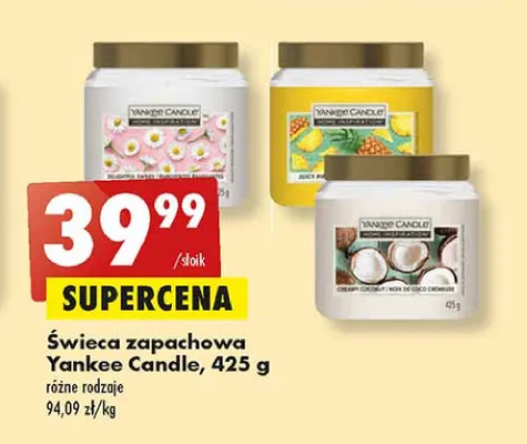 Zastanawiasz si臋, gdzie kupi膰 i ile kosztuje produkt 艢wieca w s艂oiku juicy pineapple YANKEE CANDLE? Regularnie sprawdzamy, czy jest promocja na ten produkt w Biedronka, Lidl, Kaufland, Auchan, Netto, Makro i innych sklepach. Aktualnie nie posiadamy ofert promocyjnych na ten produkt.