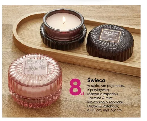 Cena produktu r贸偶ni si臋 w zale偶no艣ci od wybranego sklepu. Niestety nie posiadamy danych o aktualnych promocjach, jednak w艣r贸d archiwalnych ofert 艢wieca w szkle 8.5 x 5.2 cm orchid & patchouli kosztuje od 8 z艂.