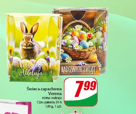 Cena produktu r贸偶ni si臋 w zale偶no艣ci od wybranego sklepu. Niestety nie posiadamy danych o aktualnych promocjach, jednak w艣r贸d archiwalnych ofert 艢wieca zapachowa verona kosztuje od 7,99 z艂.