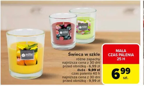 Zastanawiasz si臋, gdzie kupi膰 i ile kosztuje produkt 艢wieca zapachowa w szkle 80/70 mm mango Muller kerzen? Regularnie sprawdzamy, czy jest promocja na ten produkt w Biedronka, Lidl, Kaufland, Auchan, Netto, Makro i innych sklepach. Aktualnie nie posiadamy ofert promocyjnych na ten produkt.