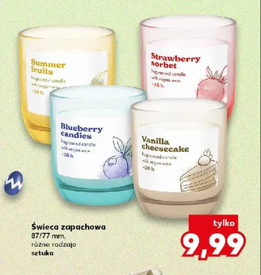 Cena produktu r贸偶ni si臋 w zale偶no艣ci od wybranego sklepu. Niestety nie posiadamy danych o aktualnych promocjach, jednak w艣r贸d archiwalnych ofert 艢wieca zapachowa w szkle 87/77 mm summer fruits kosztuje od 9,99 z艂.