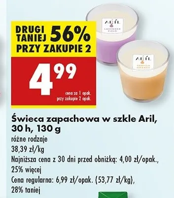 Cena produktu r贸偶ni si臋 w zale偶no艣ci od wybranego sklepu. Niestety nie posiadamy danych o aktualnych promocjach, jednak w艣r贸d archiwalnych ofert 艢wieca zapachowa wanilia i pomara艅cza Aril kosztuje od 3,29 z艂 do 4,99 z艂.