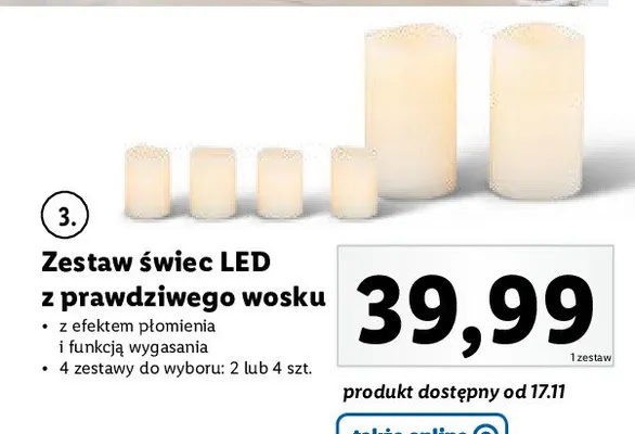 Cena produktu r贸偶ni si臋 w zale偶no艣ci od wybranego sklepu. Niestety nie posiadamy danych o aktualnych promocjach, jednak w艣r贸d archiwalnych ofert 艢wiece led z prawdziwego wosku 12.5 x 7.5 cm kosztuje od 39,99 z艂.