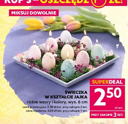 Cena produktu r贸偶ni si臋 w zale偶no艣ci od wybranego sklepu. Niestety nie posiadamy danych o aktualnych promocjach, jednak w艣r贸d archiwalnych ofert 艢wieczka jajko 6 cm kosztuje od 2,5 z艂.