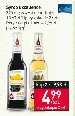 Cena produktu r贸偶ni si臋 w zale偶no艣ci od wybranego sklepu. Niestety nie posiadamy danych o aktualnych promocjach, jednak w艣r贸d archiwalnych ofert Syrop czarny bez Excellence kosztuje od 3,99 z艂 do 4,99 z艂.