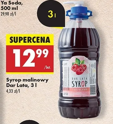 Zastanawiasz si臋, gdzie kupi膰 i ile kosztuje produkt Syrop malinowy Dar lata? Regularnie sprawdzamy, czy jest promocja na ten produkt w Biedronka, Lidl, Kaufland, Auchan, Netto, Makro i innych sklepach. Aktualnie nie posiadamy ofert promocyjnych na ten produkt.