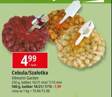 Cena produktu r贸偶ni si臋 w zale偶no艣ci od wybranego sklepu. Niestety nie posiadamy danych o aktualnych promocjach, jednak w艣r贸d archiwalnych ofert Szalotka czerwona Vilmorin garden kosztuje od 4,99 z艂 do 7,99 z艂.
