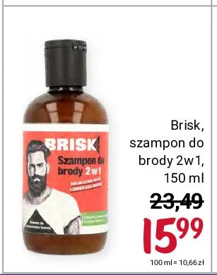 Cena produktu r贸偶ni si臋 w zale偶no艣ci od wybranego sklepu. Niestety nie posiadamy danych o aktualnych promocjach, jednak w艣r贸d archiwalnych ofert Szampon do brody Brisk kosztuje od 15,99 z艂.