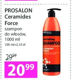Cena produktu r贸偶ni si臋 w zale偶no艣ci od wybranego sklepu. Produkt Szampon do w艂os贸w ceramides force Prosalon mo偶esz kupi膰 w promocji ju偶 od 12 z艂 do 18,99 z艂. Najta艅sza oferta, jak膮 mamy w naszej bazie jest z sieci Biedronka. Szampon do w艂os贸w ceramides force Prosalon kosztuje aktualnie 12 z艂. Zobacz ofert臋