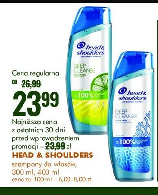 Szampon do w艂os贸w deep cleanse Head&shoulders promocje w sklepach - znajd藕 ofert臋 dla siebie!