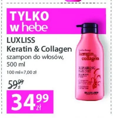 Przegl膮daj oferty promocyjne na produkt Szampon do w艂os贸w keratin & collagen Luxliss