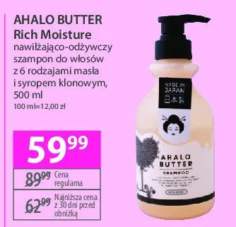 Cena produktu różni się w zależności od wybranego sklepu. Niestety nie posiadamy danych o aktualnych promocjach, jednak wśród archiwalnych ofert Szampon do włosów nawilżająco-odżywczy Ahalo butter rich moist repair kosztuje od 39,99 zł do 59,99 zł.