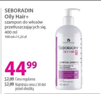 Cena produktu różni się w zależności od wybranego sklepu. Niestety nie posiadamy danych o aktualnych promocjach, jednak wśród archiwalnych ofert Szampon do włosów przetłuszczających się Seboradin oily hair kosztuje od 28,79 zł do 44,99 zł.