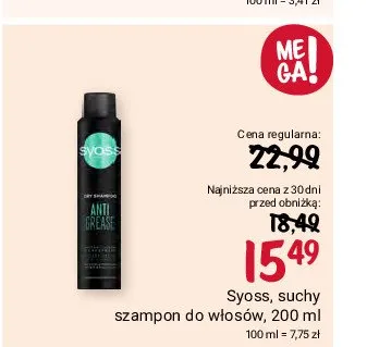 Zastanawiasz si臋, gdzie kupi膰 i ile kosztuje produkt Szampon do w艂os贸w Syoss? Regularnie sprawdzamy, czy jest promocja na ten produkt w Biedronka, Lidl, Kaufland, Auchan, Netto, Makro i innych sklepach. Aktualnie posiadamy 17 ofert promocyjnych na ten produkt. Ceny zaczynaj膮 si臋 od 34,99z艂!