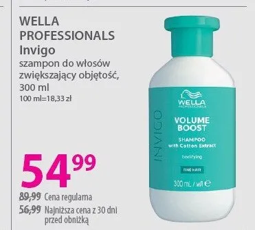 Cena produktu różni się w zależności od wybranego sklepu. Niestety nie posiadamy danych o aktualnych promocjach, jednak wśród archiwalnych ofert Szampon do włosów zwiekszający objętośc Wella invigo volume boost kosztuje od 54,99 zł do 59,99 zł.