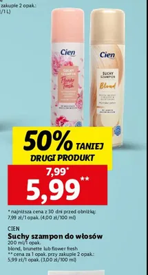 Cena produktu r贸偶ni si臋 w zale偶no艣ci od wybranego sklepu. Niestety nie posiadamy danych o aktualnych promocjach, jednak w艣r贸d archiwalnych ofert Szampon suchy blond Cien kosztuje od 5,99 z艂 do 7,99 z艂.