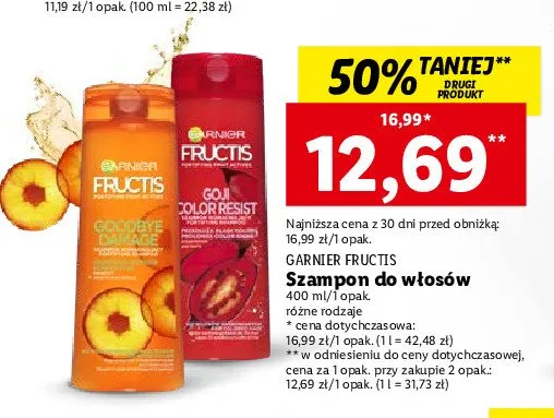 Ile kosztuje Szampon wzmacniaj膮cy do w艂os贸w farbowanych i z pasemkami Garnier fructis goji color resist?