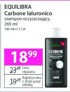 Cena produktu r贸偶ni si臋 w zale偶no艣ci od wybranego sklepu. Niestety nie posiadamy danych o aktualnych promocjach, jednak w艣r贸d archiwalnych ofert Szampon z w臋glem detox Equilibra carbone attivo kosztuje od 18,99 z艂.