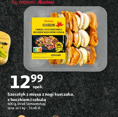 Gdzie mo偶na tanio kupi膰 produkt Szasz艂yk z mi臋sa z nogi kurczaka z boczkiem i cebul膮 Auchan?