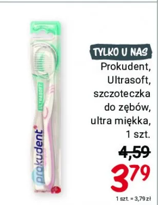 Cena produktu r贸偶ni si臋 w zale偶no艣ci od wybranego sklepu. Niestety nie posiadamy danych o aktualnych promocjach, jednak w艣r贸d archiwalnych ofert Szczoteczka do z臋b贸w ultrasoft Prokudent kosztuje od 3,79 z艂.