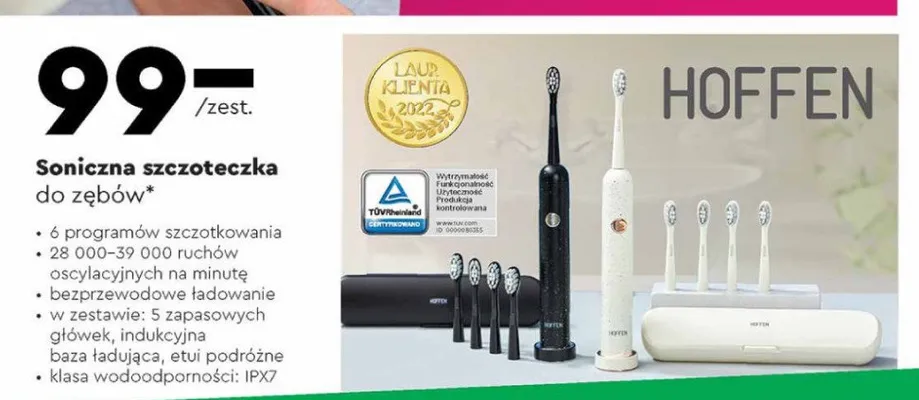 Przegl膮daj podobne oferty promocyjne do Szczoteczka soniczna czarna + 5 ko艅c贸wek Hoffen!