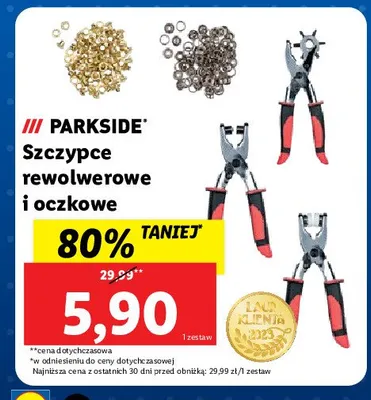 Cena produktu r贸偶ni si臋 w zale偶no艣ci od wybranego sklepu. Produkt Szczypce oczkowe Parkside mo偶esz kupi膰 w promocji ju偶 od 24,99 z艂. Najta艅sza oferta, jak膮 mamy w naszej bazie jest z sieci Lidl. Szczypce oczkowe Parkside kosztuje aktualnie 24,99 z艂. Zobacz ofert臋