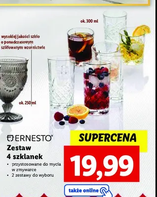 Cena produktu r贸偶ni si臋 w zale偶no艣ci od wybranego sklepu. Niestety nie posiadamy danych o aktualnych promocjach, jednak w艣r贸d archiwalnych ofert Szklanki do whisky 300 ml Ernesto kosztuje od 19,99 z艂 do 24,99 z艂.
